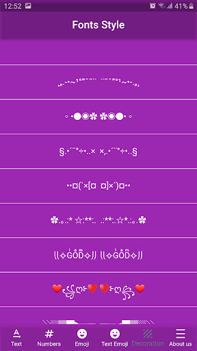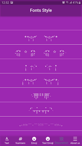 يتيح لك تطبيق الخطوط تغيير الخط المستخدم على جهازك. يجعل حساب الانستغرام الخاص بك يبدو أكثر جاذبية. إنه يثير إعجاب جهات الاتصال الخاصة بك على واتس اب و سنابشات. يولد المزيد من الإعجابات على منصات التواصل الاجتماعي الأخرى مثل فيس بوك و تويتر. يتضمن هذا التطبيق مجموعة متنوعة من أكثر من 100 خط مع أنماط مميزة للغاية. يمكن استخدام جميع الخطوط مجانًا.