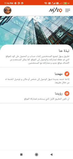 ماي لو تطبيق عربي يسهل لجميع المستخدمين إنشاء حساب، و الحصول على كود للموقع الذي تم حفظه لمشاركته و الوصول إلى الموقع.