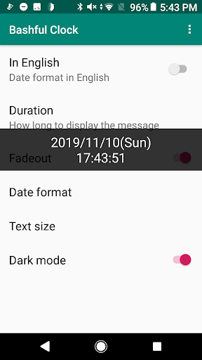 "Bashful Clock" is a clock that displayed for a few seconds after turning on your smartphone. Free, Ad-Free and Open Source! The source code is here: https://github.com/75py/Bashful-Clock
