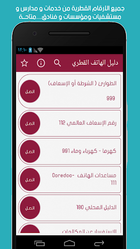 الموجودة في تطبيق دليل الهاتف القطري هي :