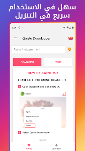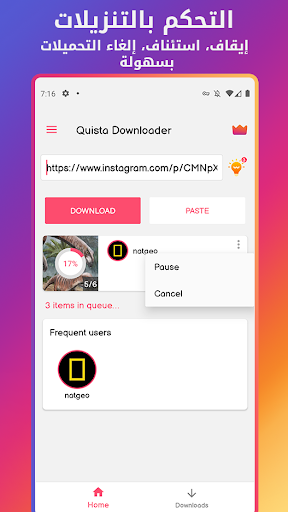 كويستا هو أفضل تطبيق لتحميل الصور والفيديوهات من إنستغرام. يساعدكم على تحميل المنشورات، والقصص، وأبرز الحالات، وكذلك الفديديوهات من انستغرام ومن IGTV بسهولة كبيرة وبضغطة واحدة وبدقة عالية.