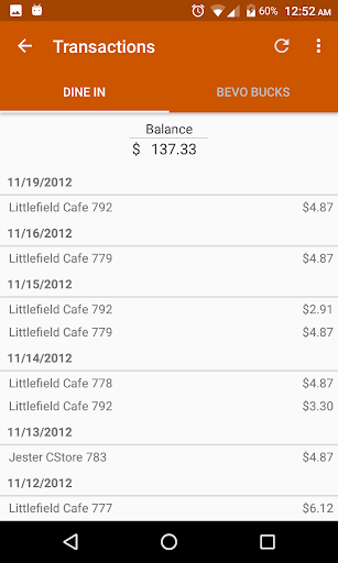 Bevo Bucks balance and transactions
