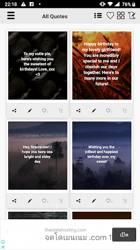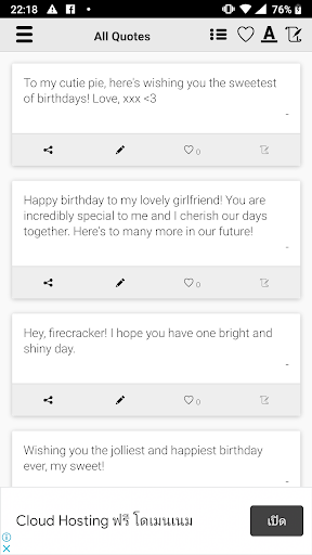 This is an App that stores many great birthday wishes for your girlfriend. I will continue adding new quotes timely. There are many Birthday Wishes for Girlfriend that you can send to your girl.