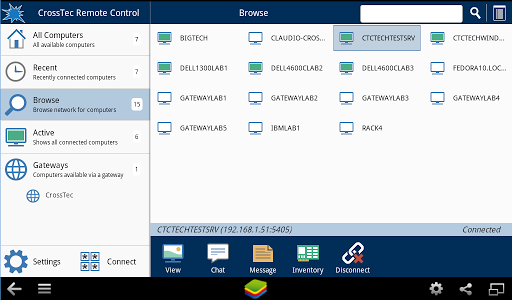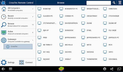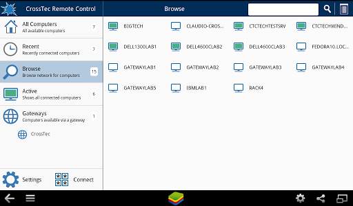 The mobile Control allows a user to quickly search and connect to both local computers by either IP address or PC name, or to browse, connect and view remote computers utilizing the free CrossTec Internet Gateway component.