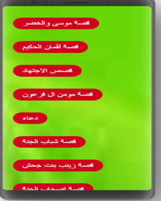 ويحتوي التطبيق على : قصة غراب ابن ادم - قصه عنكبوت الغار - حكاية ابرهه الحبشي و الطير الابابيل - حكايه اصحاب السبت - قصة بقرة بني اسرائيل - قصه حوت يونس - حكاية اهل الكهف - حكايه حمار العزير - قصة ذئب يوسف - قصه طير ابراهيم - حكاية عصا موسى - حكايه ناقة صالح - قصة هدهد سليمان - قصه السامري و العجل - قصة اصحاب الرس - قصة لقمان الحكيم - قصة موسى و الخضر - قصه قارون - حكاية مؤمن ال فرعون - قصة اصحاب الجنة - قصة زينب بنت جحش .