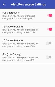 If your battery is draining and it's too low, then also it will alert you to plug the charger with the default sound, which also you obviously can change at any time from the main screen of the app.