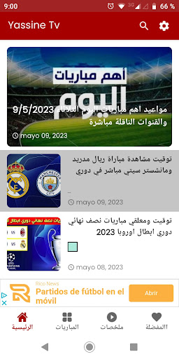 تطبيق ياسين تي في بريميوم yacinetv من اجل متابعة المباريات والقنوات الرياضية واخبار الرياضة وجدول ترتيب الدوريات كما انه سوف نعرض خدمة اخبار الرياضة لحظة بلحظة ومواعيد المباريات والقنوات الناقلة لها واسماء المعلقين على يس تيفي يس تفي مباريات اليوم