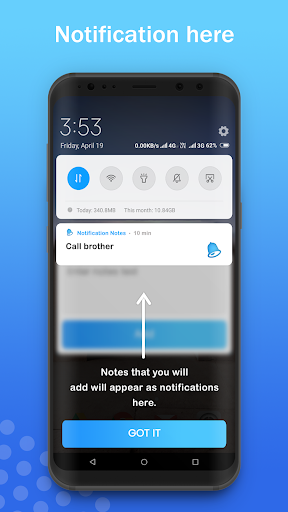 هذا شريط الإشعار هذا هو مثالي حل واحد وكل شيء، خاصة بالنسبة للآخرين الذين يميلون إلى تفويت أو تنسى الأشياء. سوف يساعدك مركز إعلام الملاحظات في الحصول على أشياء مكتوبة وستخبرك أبدا أبدا الأشياء الصغيرة بعد الآن. مع إعلام حفظ تطبيق إعلام الملاحظات، من السهل حفظ الملاحظات أو التذكير كإعلان.
