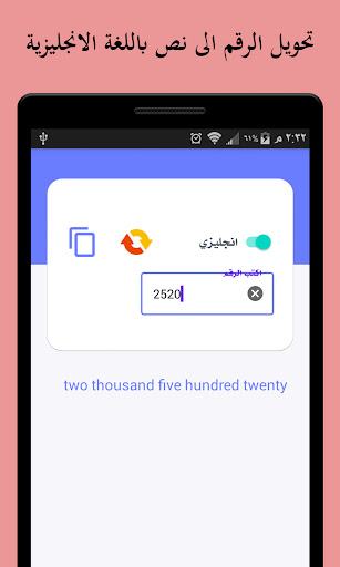 ❇️ يتيح تطبيق تحويل الرقم الى نص من تحويل الارقام الى نص مكتوب باللغة العربية او الانجليزية من خلال هاتفك المحمول أو جهازك اللوحي بكل سهولة ويسر، كما يتميز تطبيق تحويل الرقم الى نص بكونه مجاني ومتاح على متجر الهواتف للأندرويد.