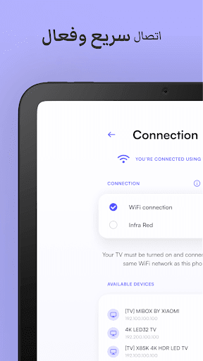 يهدف تطبيق Xiaomi Mibox TV remote control إلى التحكم في جميع أجهزة Mi Box مع خيارات التحكم عن بعد المضمنة. قم بتوصيل هاتفك وجهاز التلفزيون. بعد اتصال ناجح، سيتم انتقال المستخدم إلى الشاشة التي ترضيه.