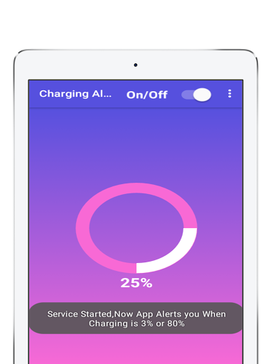 * عند بدء الخدمةسيبدأ التطبيق قيد التشغيل في الخلفية وتنبيهك عند مستوى البطارية بنسبة 3٪ و 80٪