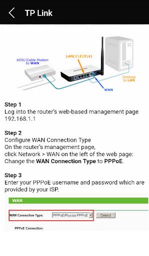 Our mobile application is a guide that explains how to set up a router admin. It shows you the default IP address, username and password information you need to make this setup. With this information you can enter the router interface and perform the necessary setup procedures.