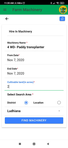 This is new initiative by Punjab Agricultural University, Ludhiana for developing Mobile App of Farm Machinery which will facilitate farmers and custom hiring centers of the Punjab state. This App will help the individual farmer, willing to provide their agricultural machinery and implements on rental basis to increase their farm income beside making the optimum utilization of the available Agricultural machineries available in custom hiring centers.