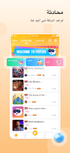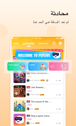 PepLive هو تطبيق غرفة صوت على الإنترنت. يمكنك اختيار 1v1 أو الانضمام إلى غرفة ،لا يوجد حد للوقت والمكان للاستمتاع بسعادة الدردشة.