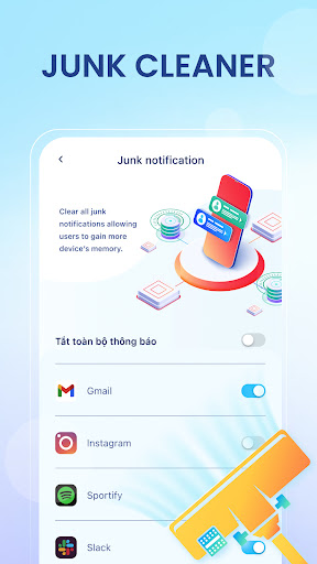 مع محرك الحساب الحديث السريع السريع، سيتم حظر الرسائل غير المرغوب فيها والمعالجة بذكاء لزيادة كفاءة التنظيف. تمكين مانع الإخطار يبقي شريط الإعلام نظيفا، العرض الذكي يعزز أداء الهاتف.