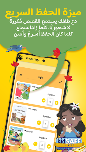 • ألعاب ممتعة، لتقييم فهم ابنك ومتابعة تَقَدُّمِه.