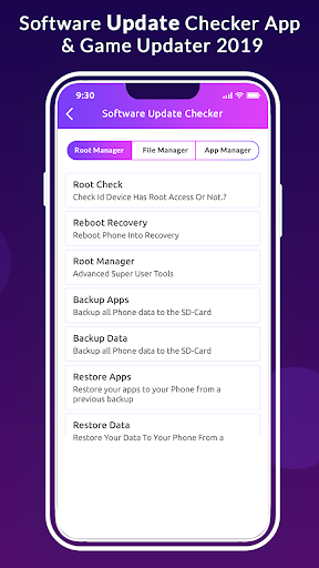 التطبيق الذي يحتوي على مرافق للتحقق من التحديثات المتاحة الخاصة بك. يكتشف التطبيق تلقائيا التحديثات المتاحة الخاصة بك من جهازك المحمول. مع رؤية تحديث التطبيق وأي تطبيق آخر مع اختيارك. هذا سهل الاستخدام والتصميم سيكون واجهة المستخدم لفهم هذا التطبيق.