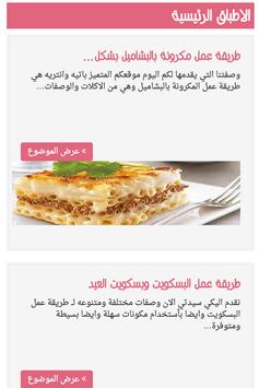 - يوجد قسم وصفات الطبخ الذي يضم مئات الطبخات والأكلات الجديدة والشرح بالصور والفيديو.