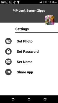 You can pull down the hook to unlock screen with amazing unzip effect. You can add name with different font style and color selection options available. You can set Enable/Disable PIP Screen Lock Zipper. This app saw time, date, selected photo and zipper on/off lock screen.