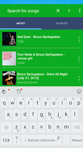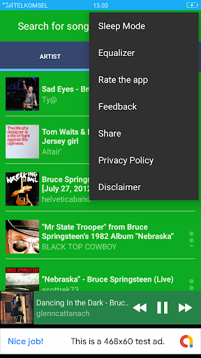 6. Lyrics of all songs, when the song is playing you can see the lyrics of the song bruce Springsteen.