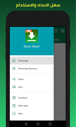 🌟 يسمح لك بتنزيل حالة أو قصة Whatsapp لأصدقائك بسهولة بالغة.
