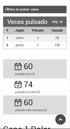 El juego es sencillo y no cuesta nada, es gratuito. Consiste en pulsar un botón, mientras más veces lo pulses más puntos acumulas para ser ganador. Hay premios diarios y premios semanales pudiendo participar en todos. También te mostramos unas estadisticas para que tengas una idea de cuantas veces has pulsado el botón y cuantas veces lo han pulsado tus rivales. Es una forma facil, sencilla y rapida de ganar dinero de manera divertida y entretenida.