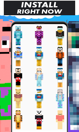 In the appendix, you will find beautiful onepanchmen skins, spongebob, patricks, skins from star wars, disney skins, skins of princesses, queens, chewbacca skin, skins of mermaids, monsters, mickey mouse skins, bandy skins, skin of bart simpson, donald duck, skins from looney tunes, south park, minion skins and other skins from cartoons, anime skins for girls and boys.