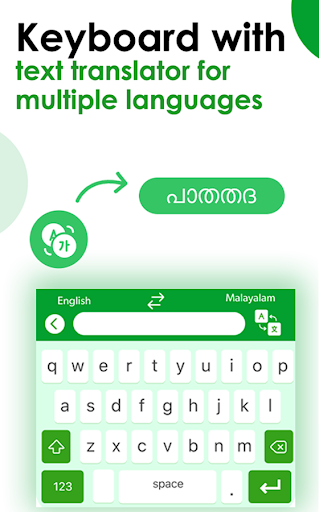 بعد تثبيت لوحة المفاتيح الرومانية الإنجليزية إلى Malayalam Convert سيتم تمكين التحويل تلقائيا. ابدأ في كتابة أي شيء في اللغة الإنجليزية الرومانية وسيتم تحويله إلى أبجدية مالايالامية. يمكنك تعطيل الترجمة الإنجليزية إلى مليمايالام ويمكنها استخدام لوحة المفاتيح ك لوحة مفاتيح منتظمة أيضا. ميزات لوحة المفاتيح المالايالامية: