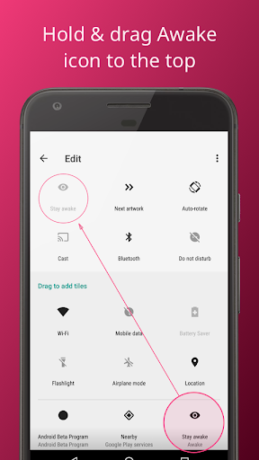 يعمل مستيقظا كإعداد بلاط سريع أو باستخدام التطبيق.
