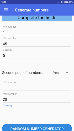 يمكنك إنشاء أرقام عشوائية للألعاب في جميع أنحاء العالم مثل Powerball ، Lotto ، إلخ.من الأرقام العشوائية التي سيتم إنشاؤها في النطاق.