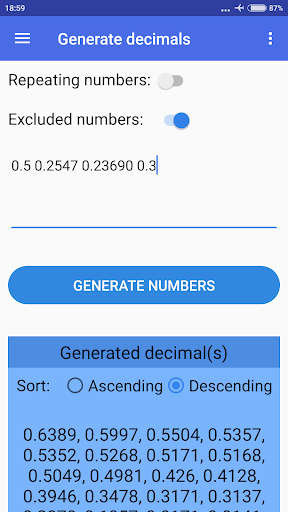 يمكنك أيضًا تحديد ما إذا كنت تريد استبعاد أرقام محددة أم لا ، إذا كنت تريد تكرار أرقام عشوائية أو لا وفرز النتائج إما عن طريق ترتيب تصاعدي أو تنازلي (الترتيب الافتراضي عشوائيًا).