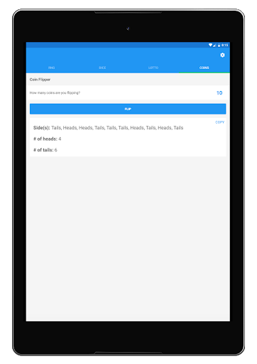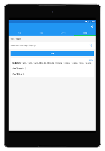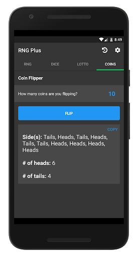 بحاجة إلى تسوية بسرعة 50/50 رهان؟ ثم استخدم مولد عدد عشوائي بالإضافة إلى الوجه عملة واحدة لك! الوجه ككثير من العملات المعدنية كما تريد كلما أردت. يحفظ التطبيق أيضا العدد المفضل لديك من العملات المعدنية لقلب إعادة الاستخدام السريع وتسليم عدد الرؤوس التي انقلبت، وانقلبت tails لك في مربع النتائج أيضا. و YEP، يمكنك نسخ إلى الحافظة هذه النتائج أيضا.