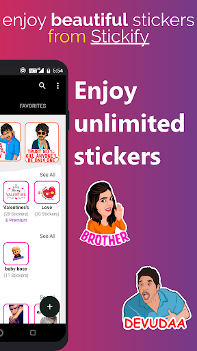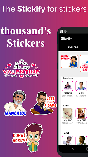 Stickify التطبيق يوفر لك ملصقات وحزم ملصقا للاتحاد Whatsapp Chat. يمكنك تنزيل الملصقات أو حزم الملصقات بمجرد البحث عنها في هذا التطبيق. يمكنك العثور على ملصقاتك المفضلة التي تحتاجها في Formify.