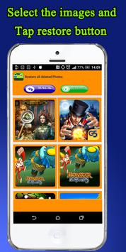 Files deleted, and let sweep all the external and internal memory of the phone. This app retrieve the photos
