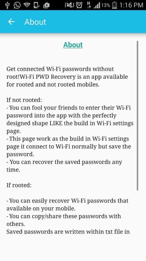 يرجى نفهم أن مجانية واي فاي استعادة كلمة السر هو التطبيق مجاني ويحتوي على إعلانات لدعم تطوير تكلفة. للإعلانات التطبيق الحرة؛)