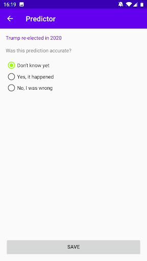 أدخل تنبؤك ، لكن كن حذرًا!بمجرد أن يتم قفله ، لا يوجد عودة - يتم وضع تنبؤك إلى الأبد في الحجر ، ولا تحرير ، ولا حذف!يتم تسجيل تاريخ ووقت تنبؤك تلقائيًا ، حتى يتمكن الجميع من رؤيتك تنبأ بذلك قبل حدوثه..