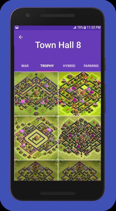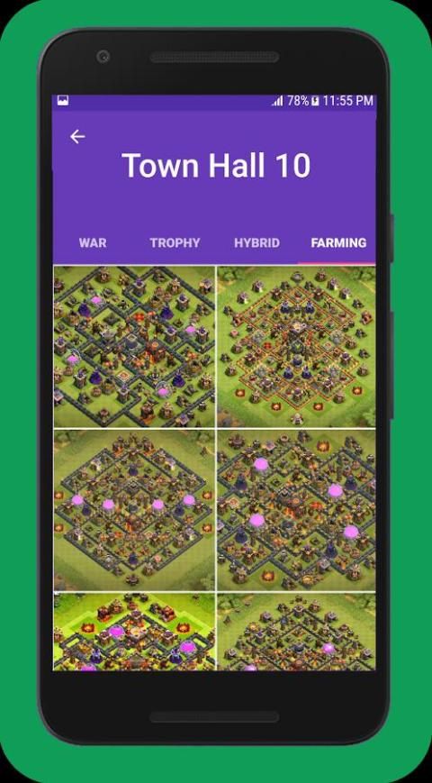هذا هو التطبيق غير متصل يحتوي على خرائط قاعدة دفاعية جديدة من تخطيطات قرية COC من تاون هول 1 إلى تاون هول 11 مع 4 فئة الحرب، غنيمة، الهجين والزراعة.