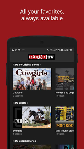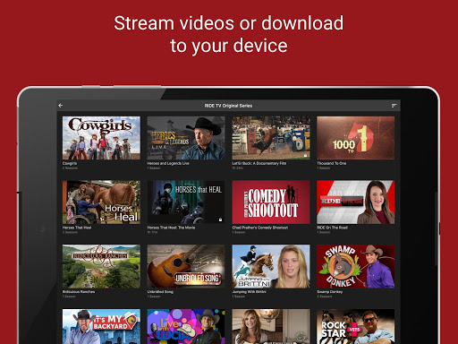 Ride TV هي أول شبكة نمط حياة للفروسية التي تجلب لك مجموعة مختارة من المئات من برامج الواقع الجديدة المتعلقة بالخيول والأفلام الوثائقية وبرامج الأطفال والمسابقات والمزيد.اختر من بين مجموعة رائعة من مقاطع الفيديو المتوفرة عند الطلب أو دفق Ride TV Live.كل شيء متوفر مع TV Ride وكل ذلك يحتفل بالحصان.