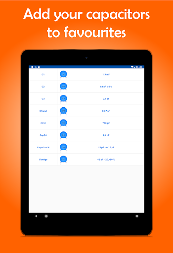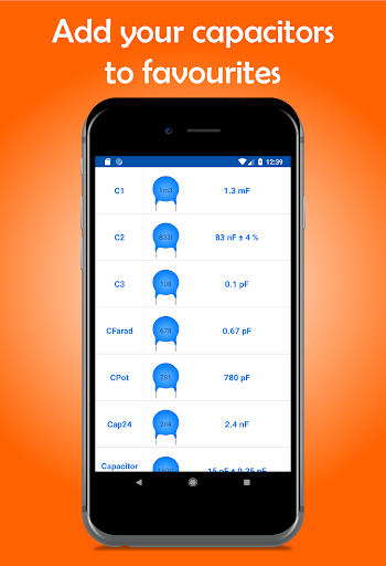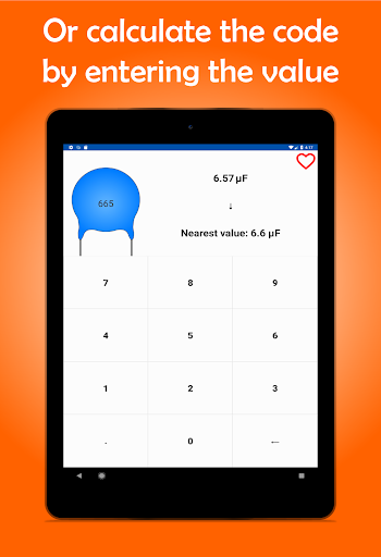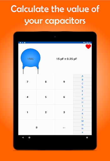 احسب قيمة كل مكثف بسهولة في فراد مع هذا التطبيق.اكتب رمز مكثفك، بما في ذلك قيمة التسامح أو كتابة القيمة والحصول على الكود، مباشرة بعد إضافة مكثف الخاص بك إلى المفضلة!هذا التطبيق ضروري إذا كنت تعمل أو دراسة الإلكترونيات، حيث سيكون لديك جميع قيم المكثفات في متناول يدك.قم بتنزيل كل مكثف على هاتفك الذكي.