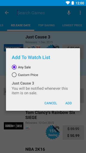 إذا كانت اللعبة التي تريدها لا تحتوي على صفقة نشطة أو تريدها بسعر أرخص، فيمكنك إضافتها إلى قائمة المشاهدة وإخطارها بمجرد البيع!