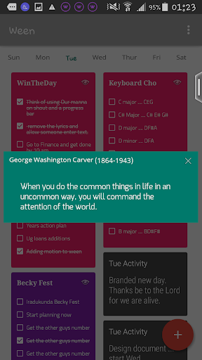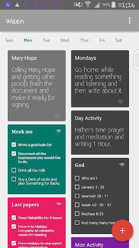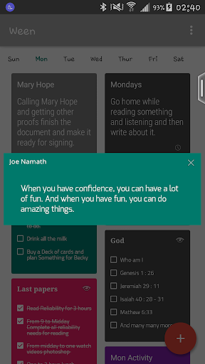 While you labor to schedule your week's activities, errands, and checklists, beware to learn a thing or two. The application has a portal where you can get bible verses, inspirational and motivational quotes that shall greatly enrich you.