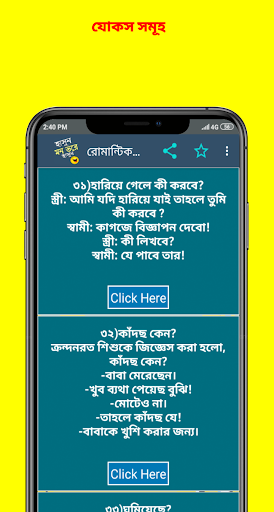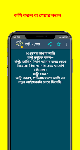 বিনোদন সকলের জন্য প্রয়োজন তাই ব্যবহার করুন এই অ্যাপটি।আমাদের এই অ্যাপটি প্রায় ৫০০ বেশি যোকস নিয়ে তৈরি তাই আপনাদের মন মতো যোকস আপনারা পড়তেও পারবেন আবার কপি করে কাউকে পাঠাতে পারবেন।