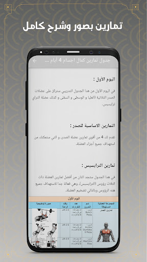محتويات تطبيق جدول تمارين كمال اجسام كامله :👸