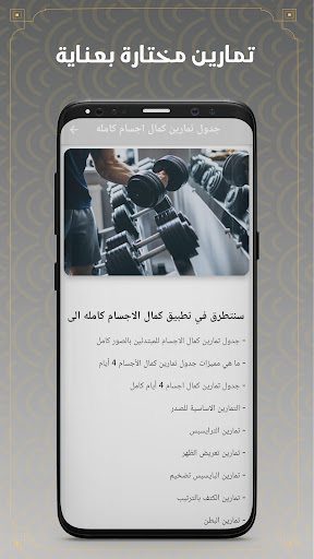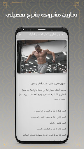 - يحتوي على العديد من تمارين كمال الاجسام مثل تمارين كمال الاجسام الدليل الشامل .