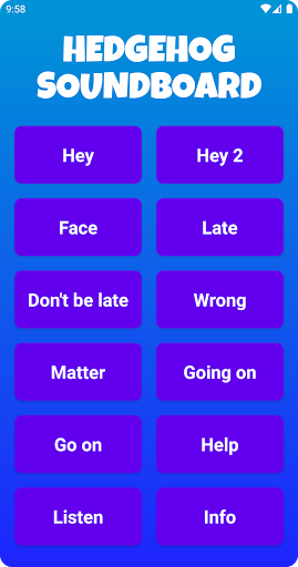 Soundboard for Hedgehog! Over 30 funny sounds to prank your friends & family. Have fun.