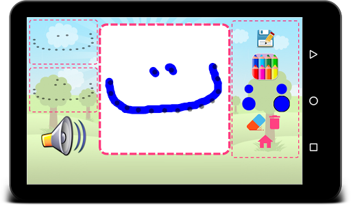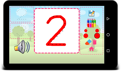 يحتوى التطبيق على جميع الحروف العربية والانجليزية والارقام حتى رقم عشرة مكتوبة بنقاط حتى يتمكن الطفل من تتبع النقاط لرسم الحرف بشكل صحيح .