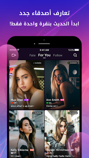 اكتشف من يجذبك عبر دردشة الفيديو أو الصوت بغض النظر عن مكان وجودك ، تجمع هنا مجموعة من السيدات العازبات والأولاد الوسيمين. استمتع فيديوهم المجانية واسحب لبدء دردشة فيديو مع الغرباء. ارسل رسالة خاصة لقول: هاي!