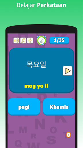 في هذا التطبيق، ستستخدم بهاسا ماليزيا لفهم اللغة الكورية، بما في ذلك الحروف الكورية (Hangul)، والكلمات والجمل المتكررة.