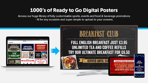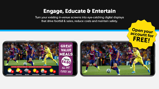 يمكنك ببساطة التحكم وإدارة ومراقبة كل جانب من جوانب شبكة الشاشة الرقمية الخاصة بك، من أي مكان، في أي وقت. أظهر أماكنك القناة التلفزيونية الخاصة جدا مصممة خصيصا لمصالح عملائك - بما في ذلك أبرز الرياضة، ومقاطع فيروسية، أو عروض ترويجية مصممة، أو حتى الألعاب الرياضية المفضل المفضلة في HD * (* التخلص من حزم المحتوى الحي المباشر فقط).