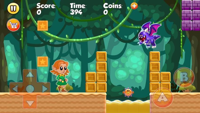 لعبة 4 العالم الغابة مغامرة سوبر لاب هي لعبة كبيرة منصة مصممة في نمط الرجعية.